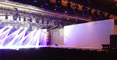 安装方便,成本较低,很普遍的舞台搭建方式桁架喷绘背景